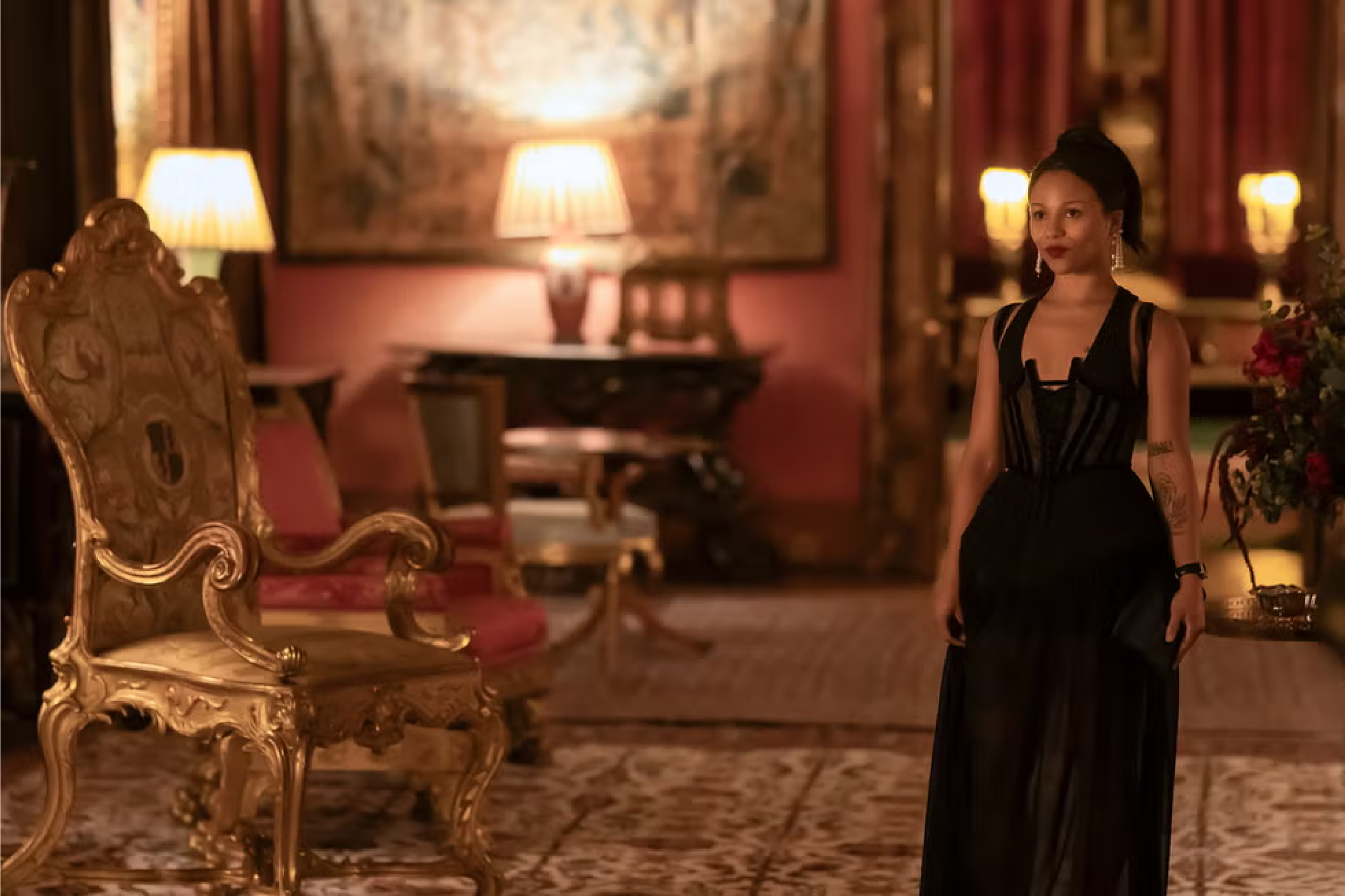 In Season 1, Harper was an underdog with nothing to lose and everything to prove. Since then, she has learned how to get what she wants through both intellect and sex appeal. That evolution became more apparent in Season 4, Episode 2, when she arrived in an all-black David Koma racer-top crinoline dress, styled with an 18th-century velvet boned corset and Roger Vivier pumps. While others opted for color, Harper stood out as the black cat of the ball. All black is a powerhouse statement.