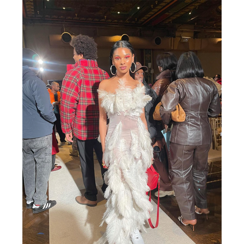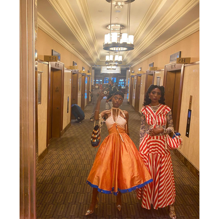 Then there's fashion influencer Tamu McPherson hitting the pavement in a chic double coat look, layering a metallic trench coat and navy wool dress coat with Chanel boots, a perfect look for any front row doll. While model Faith Jaggernuath looked flamboyant and etherial in Tia Adeola. Not to mention, mother daughter fashion designer duo for House of Aama showing off their looks from their SS22 that are coming soon
