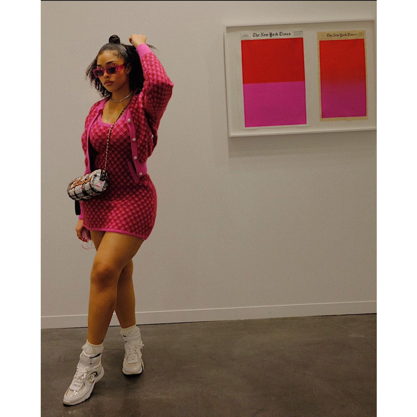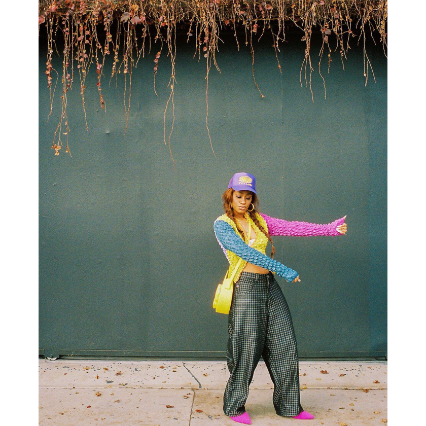 This week's best in looks on Instagram take to the streets of New York City with some of our favorite Fraîche women maxed out in maximalist style from head-to-toe. Reminding us that winter is not just for black puffy coats and snow boots. The girls rock bold colors, patterns, textures and prints that truly excite me for Fall/Winter 2022. Like actor Alyah Chanelle Scott from Sex Lives of College Girls fame rocking bold multicolor gingery tartan over coat by Coach paired with chocolate brown sued tie-up boots at the Coach FW22 show, while completing the look with a matching mini handbag.